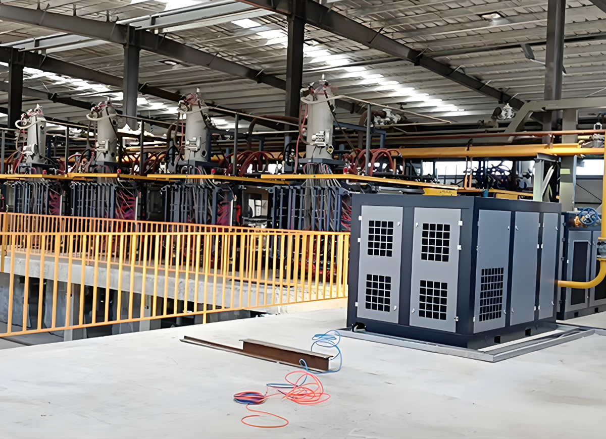 4、機器的機架采用防扭曲空心型鋼,由松下二氧化碳保護焊機焊接在一起。焊接后的車架將進行內(nèi)應(yīng)力時效處理,該處理由SIGMAR高頻老化機進行。之后,框架將進行納米電鍍涂層處理,這將保證其高防腐性能和強度。