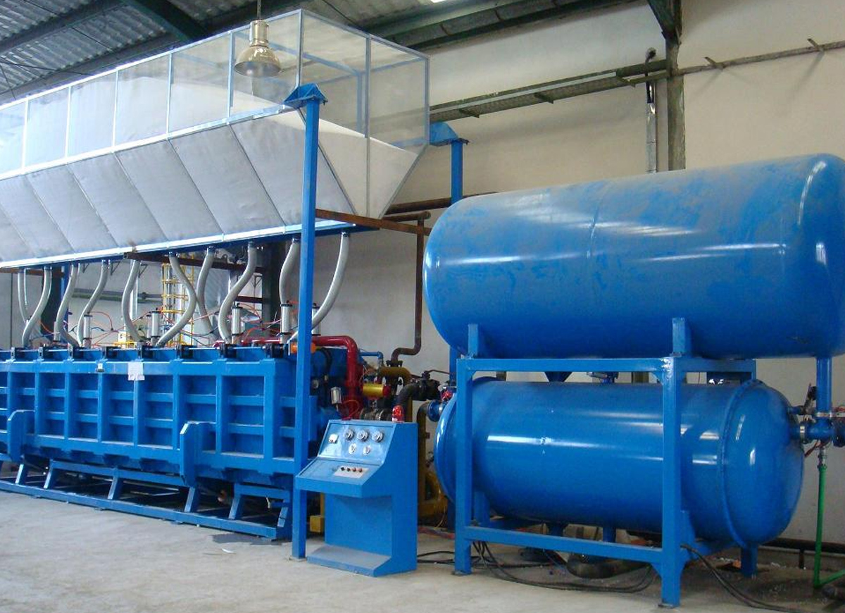 4、集成高效真空泵冷卻裝置,滲透性強,附著力好,蒸汽消耗低,成型速度快,含水量低,保證了加厚泡沫塑料板內外均勻,大大提高了生產效率。